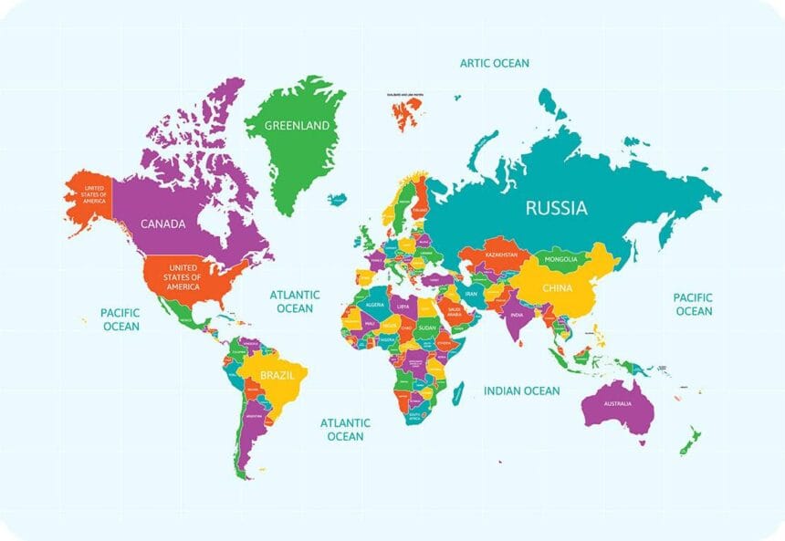 Discover the world with our Free Vector World Map featuring country names. Perfect for educational materials, infographics, and more. Download now for accurate geographic information!