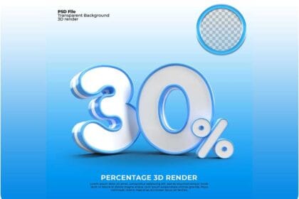 Impress your audience with dynamic 3D PSD numbers illustrating a significant 30%…
