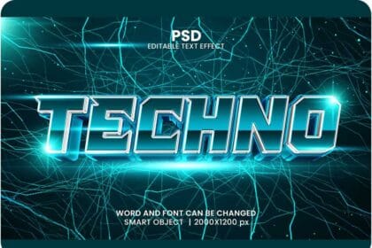 Unlock your creativity with our editable 3D Techno Blue Text Effect PSD,…