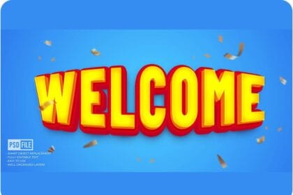 Make a memorable entrance with our Editable 3D Style Welcome Text PSD.…
