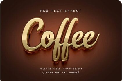 Indulge in creativity with our premium PSD coffee 3D Editable Text Effect,…
