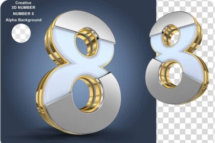 Elevate your designs with our stunning 3D realistic gold number eight PSD,…