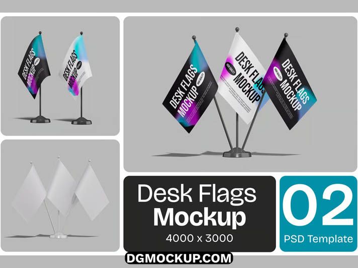 • A versatile bundle with two PSDs: 2-flag and 3-flag desk mockups