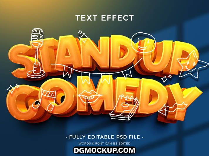 Features of Stand Up Comedy Show Text Effect PSD