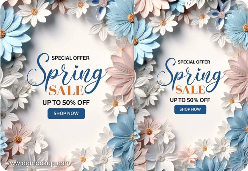 Capture the essence of spring with our exquisite PSD mockup, perfect for showcasing your Wedding invitations or greeting cards adorned with beautiful spring flowers. This free mockup offers a delightful canvas to present your designs with elegance and charm. The vibrant spring blooms add a touch of freshness and romance to your invitations, setting the perfect tone for your special day. With customizable smart objects, you can effortlessly insert your artwork onto the mockup, ensuring a seamless integration with your design concepts. Whether you’re a designer, bride-to-be, or event planner, this mockup provides an enchanting backdrop for your wedding stationery. Download now and let your invitations blossom with the beauty of spring!