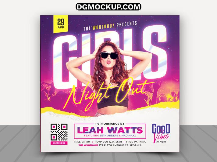 Optimized Girls Night Out Party Flyer & Social Media Post Free PSD for both print and digital use, it works perfectly as a flyer for distribution or as a ready-to-use design for Instagram, Facebook, and other social platforms. The PSD file is fully layered and Free PSD Mockup easy to edit, allowing you to customize event details, change colors, and add logos with just a few clicks in Adobe Photoshop. Whether you are an event organizer or a designer Social Media Post looking to save time, this free PSD helps you create stunning promotional visuals quickly. Download today and make your event stand out. You Can Also Download a Free 2025 Design Template.