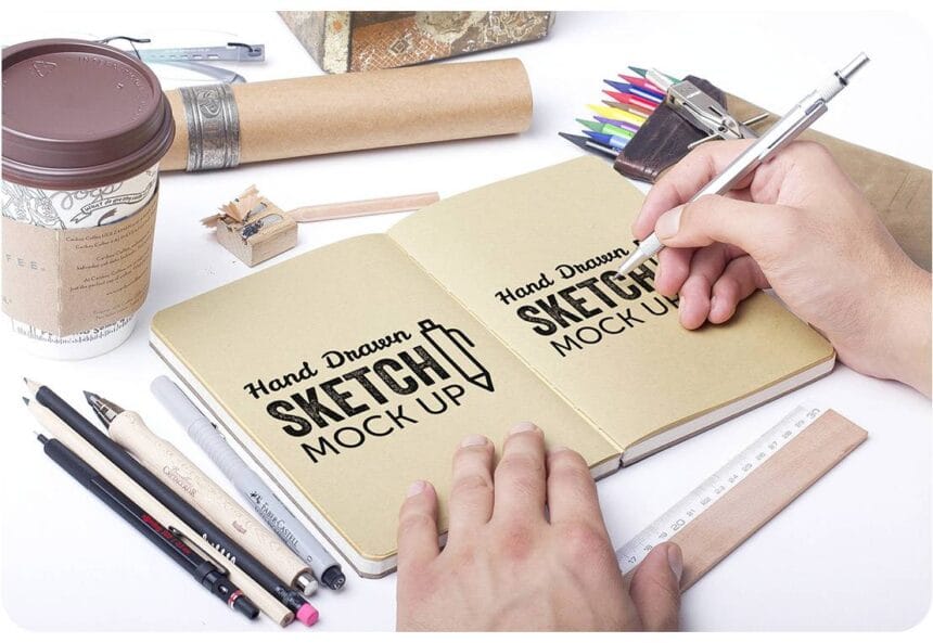 Step into a world of artistic expression with our Hand-Drawn Sketch PSD Mockup Scene 03. This captivating scene provides a unique backdrop for showcasing your hand-drawn sketches, illustrations, or designs, allowing you to elevate your artistry and captivate your audience with authentic handmade charm.