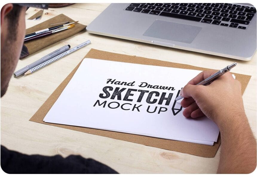 Download our Hand-Drawn Sketch PSD Mockup Scene 11 for free and explore a world of artistic possibilities. This versatile scene offers a captivating backdrop to showcase your hand-drawn sketches, illustrations, or designs, empowering you to unleash your creativity without any cost.