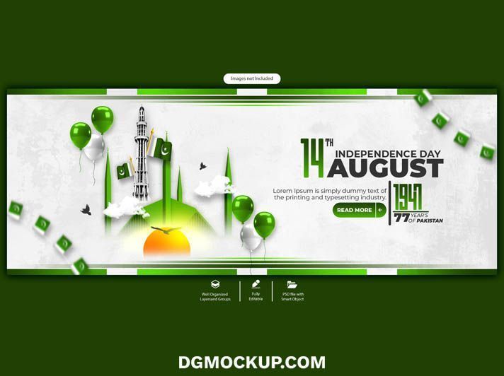 Happy 77th Independence Day of Pakistan FB Cover PSD Mockup