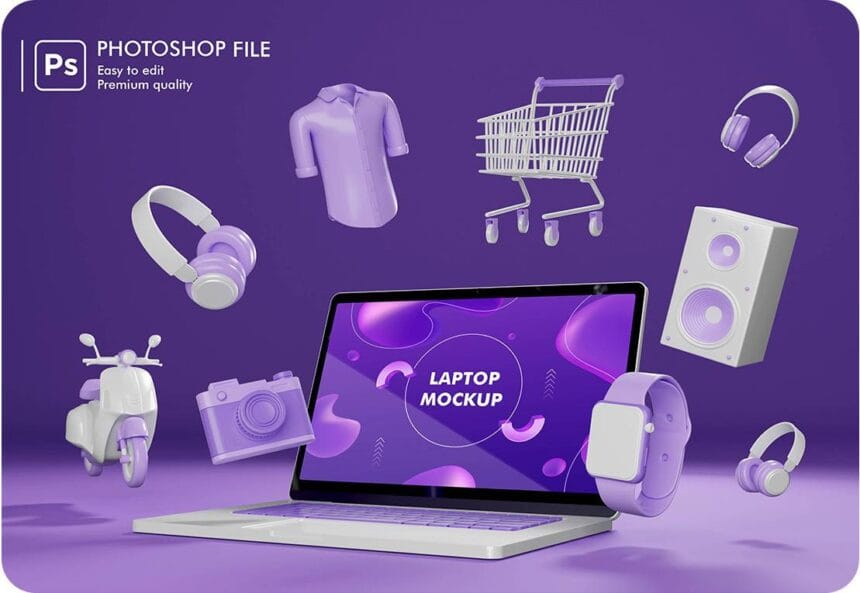 Immerse yourself in the world of online shopping with our PSD 3D rendering featuring various objects surrounding a laptop. Step into the digital realm where convenience meets choice, as this dynamic composition captures the essence of e-commerce. Explore a curated selection of products orbiting the laptop, symbolizing the vast array of options available at your fingertips. From electronics to fashion, each object is meticulously rendered in stunning detail, inviting viewers to embark on a virtual shopping journey. Perfect for website banners, promotional materials, or social media graphics, this PSD file offers versatility and impact. Experience the future of shopping in 3D and elevate your online presence with this captivating rendering. Download now and redefine the online shopping experience!