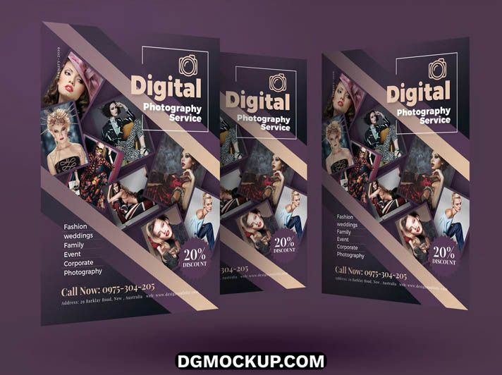 Promote Professional Photography Service Flyer Free PSD Template your studio or freelance services with the a sleek and modern design crafted to showcase your creativity and professionalism. Ideal for photographers specializing in weddings, portraits, events, or fashion, this Flyer Design highlights your services, portfolio, and contact details in a visually Product Mockups appealing way that instantly attracts potential clients. The PSD format is fully layered and organized, featuring smart objects that make customization quick and easy. You can Also Download Free Business Cards.