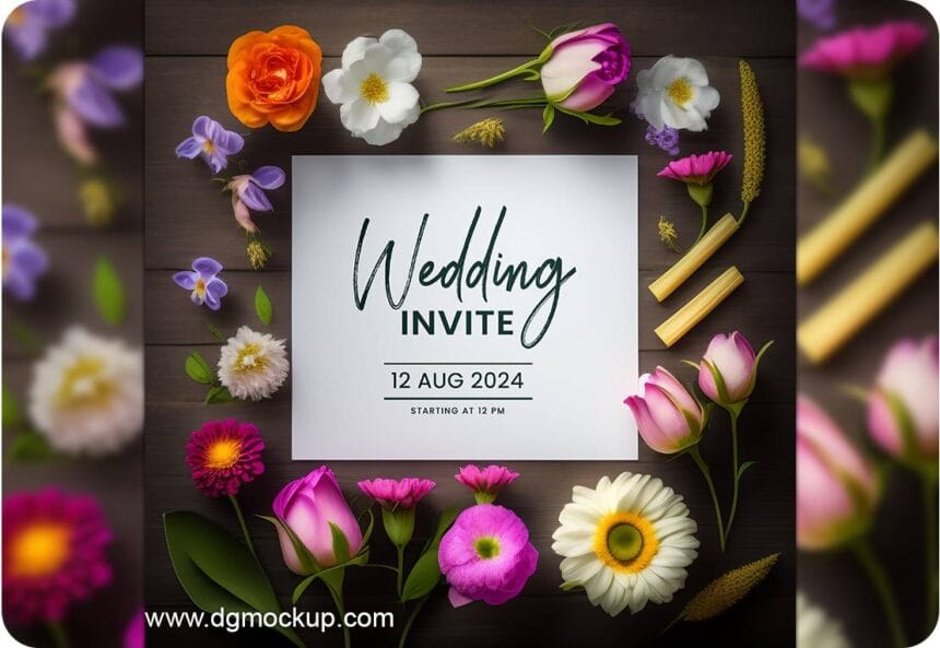 Elevate wedding invites with Spring Flower Wedding Invitation & Save the Date Mockup PSD 17. Delicate blooms set a romantic tone.