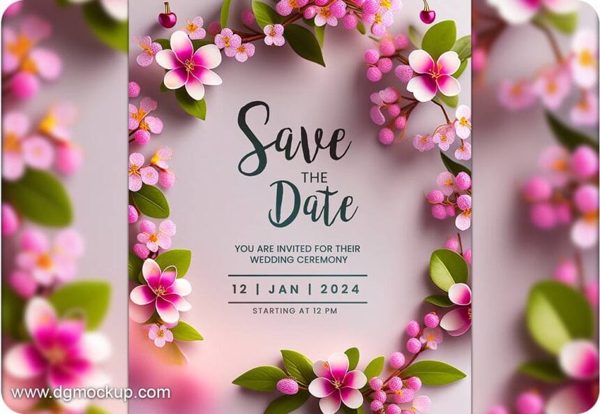 Elevate your wedding stationery with our Spring Flower Wedding Invitation & Save the Date Mockup PSD 19! Infused with the beauty of spring, this mockup offers high-resolution PSD files for effortless customization. Perfect for designers and brides alike. Download now!”