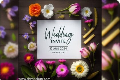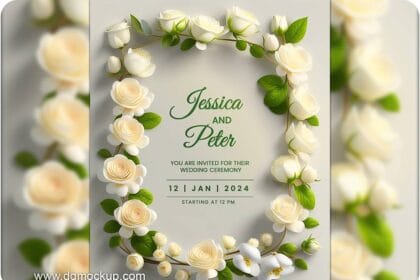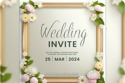 Spring Flower Wedding Invitation Greeting Mockup PSD 09