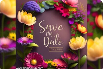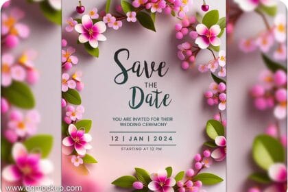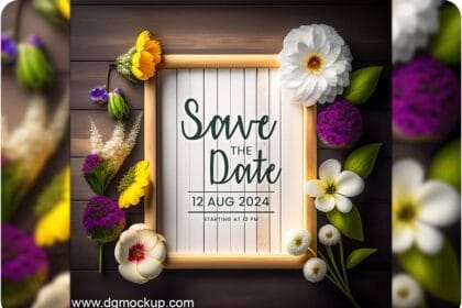 Spring Flower Wedding Invitation & Save the Date Mockup PSD 14