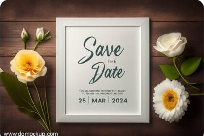 Flower Wedding Invitation & Save the Date Mockup PSD 25