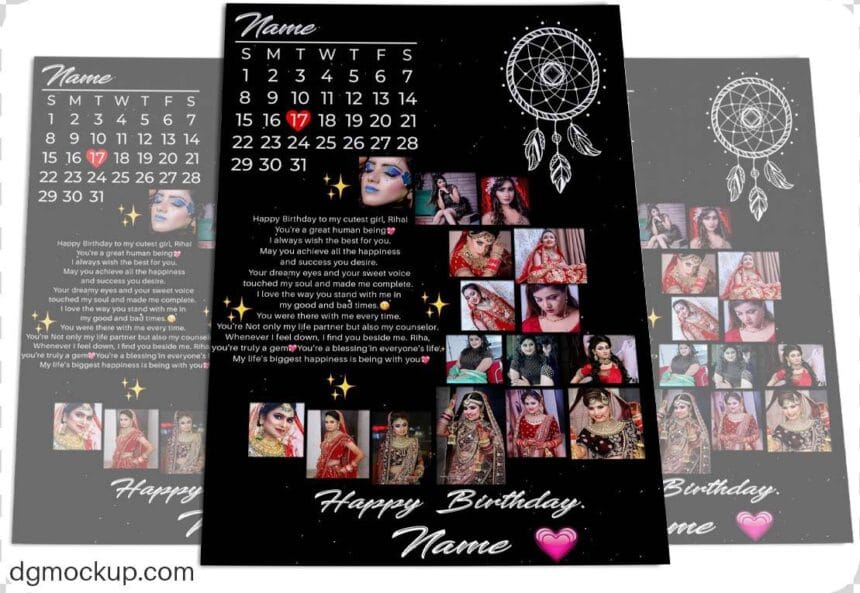 Are your customers seeking trendy collage Photo Frames designs? Look no further! I’m sharing a stunning Wedding Anniversary and Happy Birthday Photo Frame that will dazzle your customers. This Collage Photo Frame doubles as a calendar, adding an extra touch of beauty. With space for 14 photos, it’s perfect for capturing precious memories. Skip the hassle of designing it yourself download the ready-made Photoshop PSD from dgmockup.com for free! Editing is a breeze, saving you valuable time. Check out the accompanying video for a closer look. Don’t forget to leave feedback on this amazing post