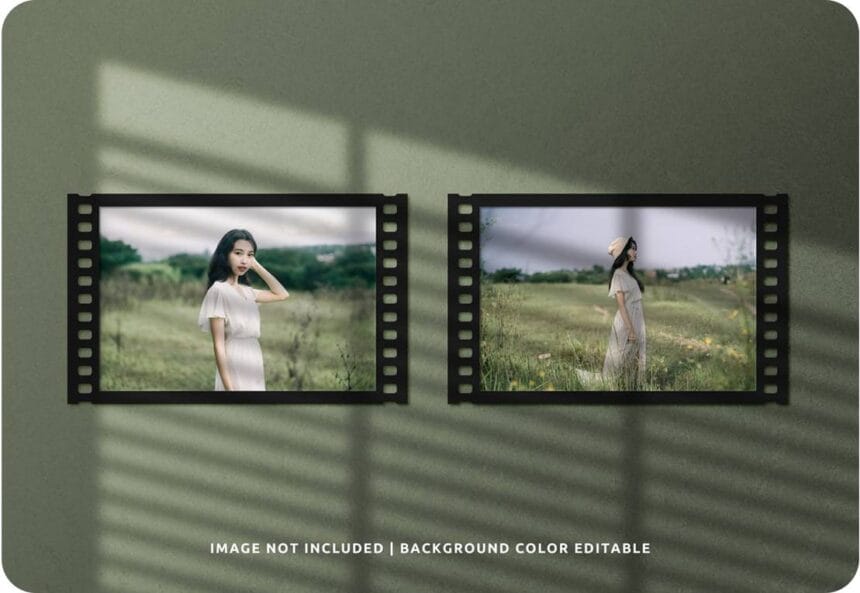 Transport your designs to a bygone era with our twin landscape classic film paper frame PSD mockup. Ideal for photographers, artists, and enthusiasts of vintage aesthetics, this mockup offers a charming way to display your work in a timeless format, evoking the nostalgia of classic film photography.